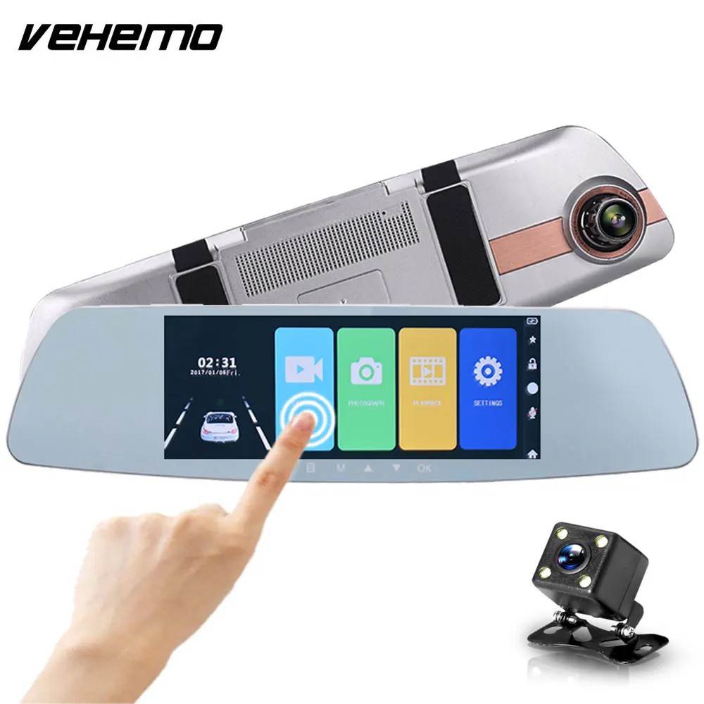 Buy Car DVR 7" Touch screen Dual Lens Car Camera FHD 1080P Video Recorder Rearview Mirror With Rearview DVR Dash cam Auto here and Now, and You will Save USD 12.58 or 19.000151034587 %, Becuase You Just Pay for USD 53.63 not Full Price for USD 66.21